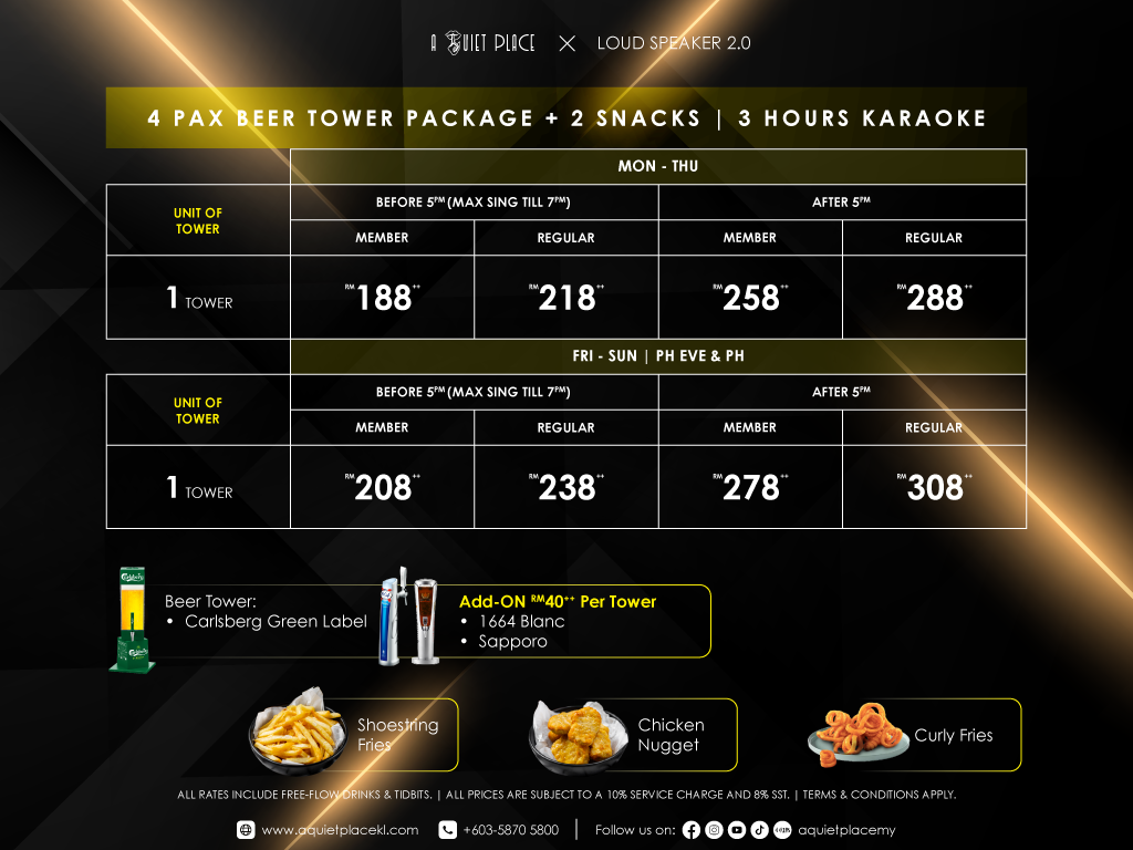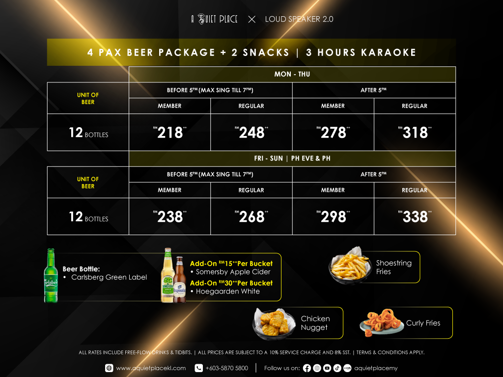 b) Available at all Loud Speaker 1.0 outlets, except Kepong’Gi Square outlet.