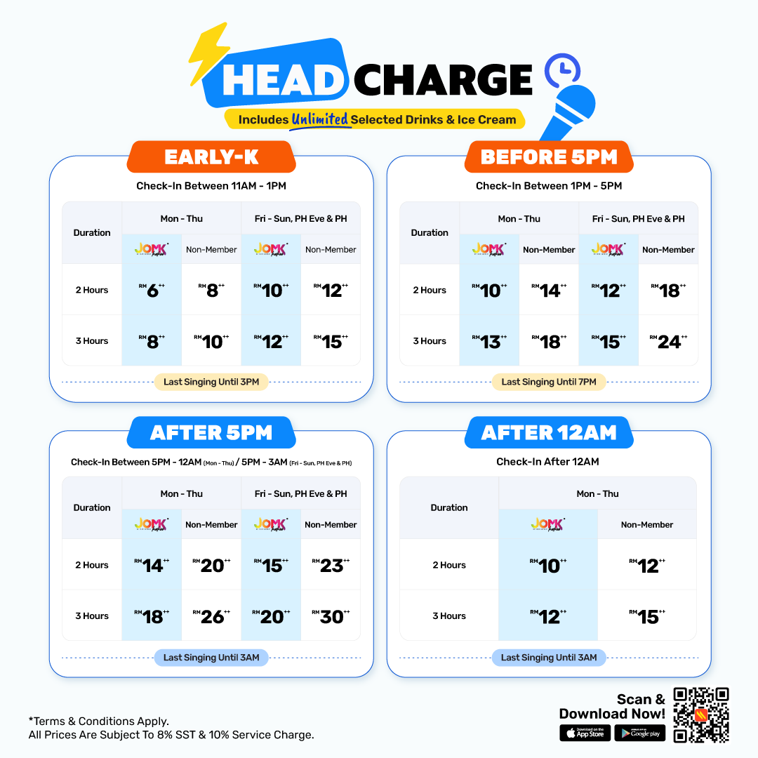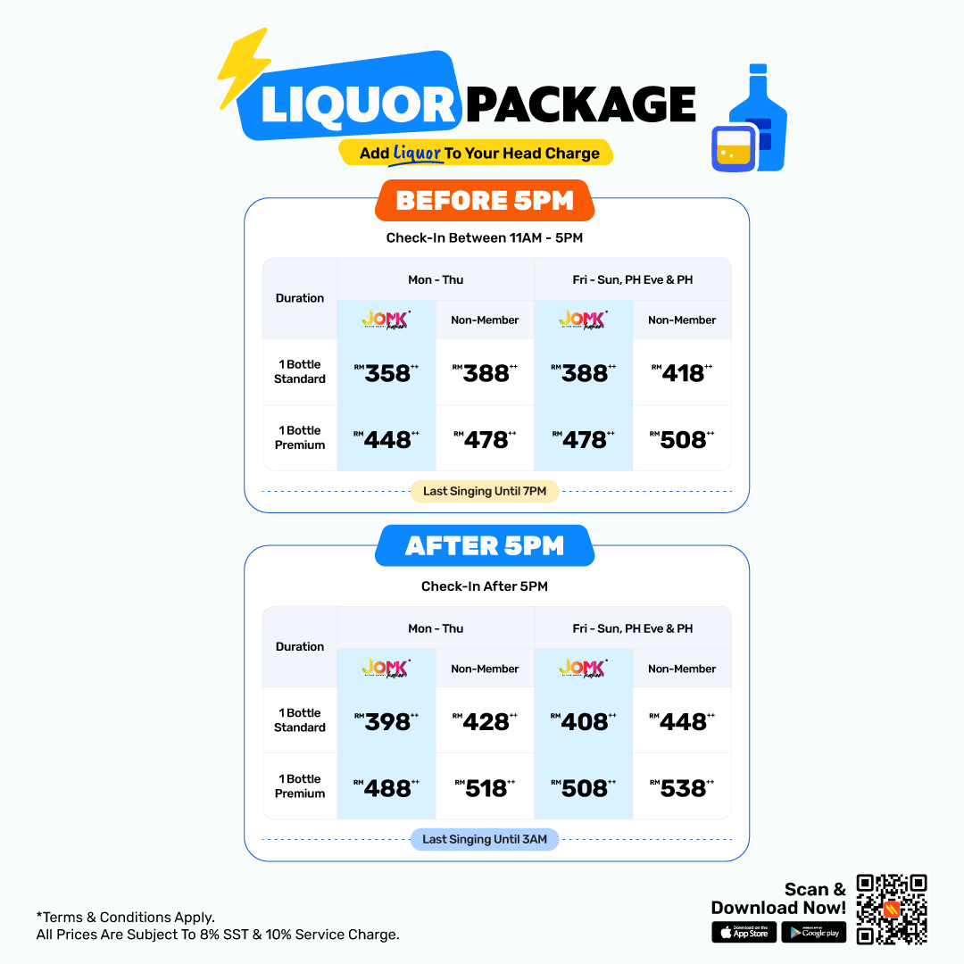 *All prices are inclusive of a 3-hour singing session & free-flow drinks.
