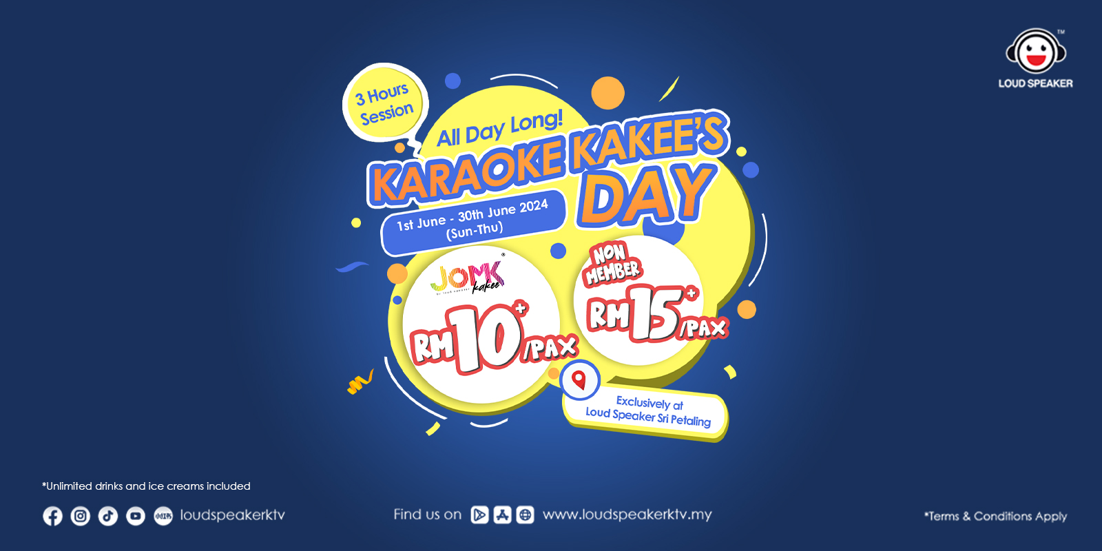 1. Karaoke Kakee’s Day Promotion is available at Loud Speaker 1.0 Sri Petaling outlet only.