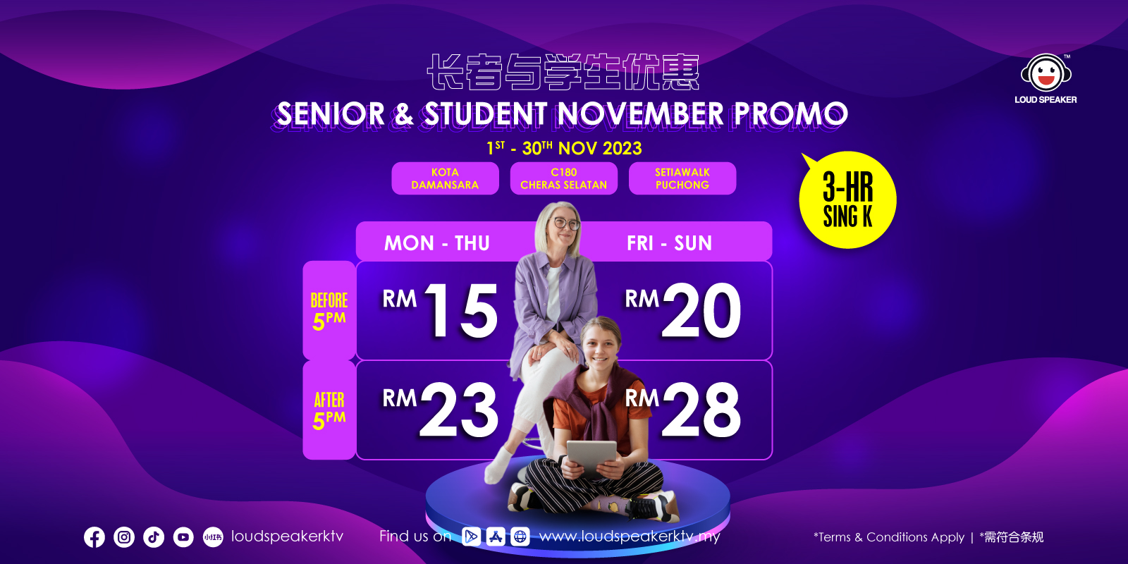 #LoudSpeakerKTV #KaraokeMalaysia #KaraokePromo #SingForLess #StudentDiscount #SeniorSpecial