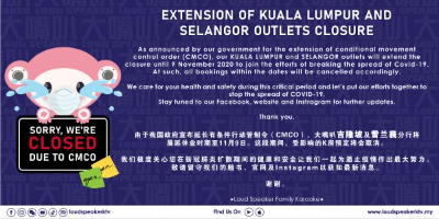 EXTENSION OF KL & SELANGOR OUTLETS CLOSURE
