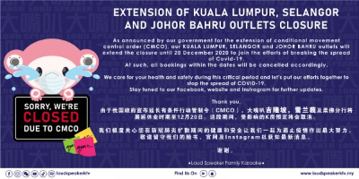 CLOSURE OF KARAOKE KL & SELANGOR OUTLETS
